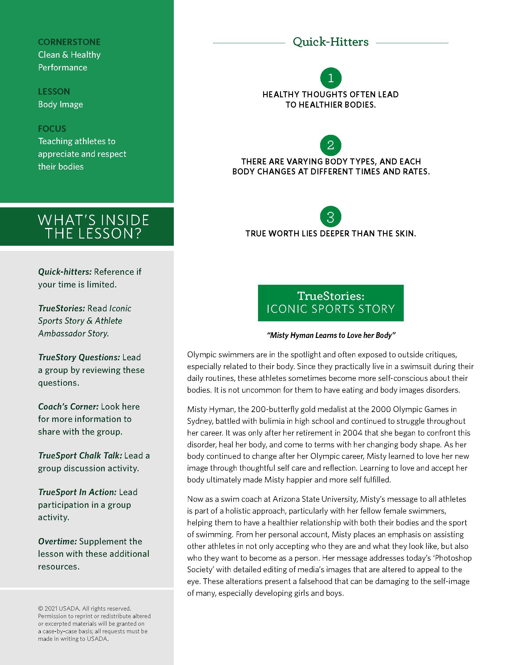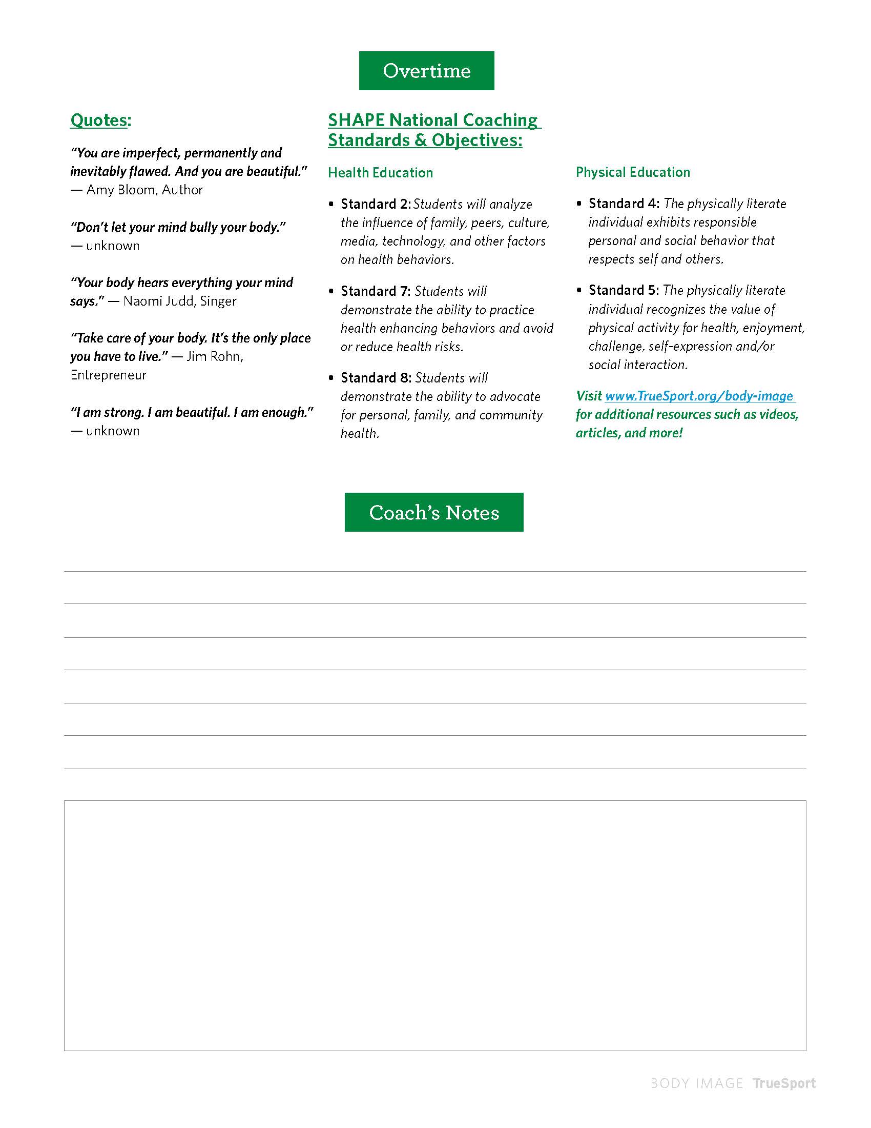 Find the answers to these questions and more inside the TrueSport Body Image Lesson!