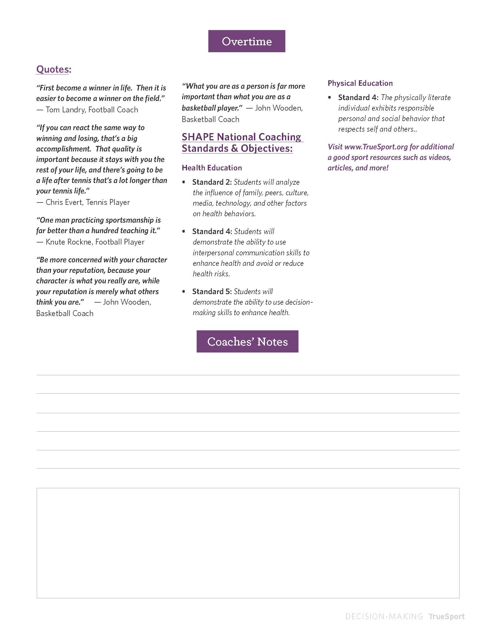 Visit TrueSport.org/decision-making for additional resources such as videos, articles, and more!