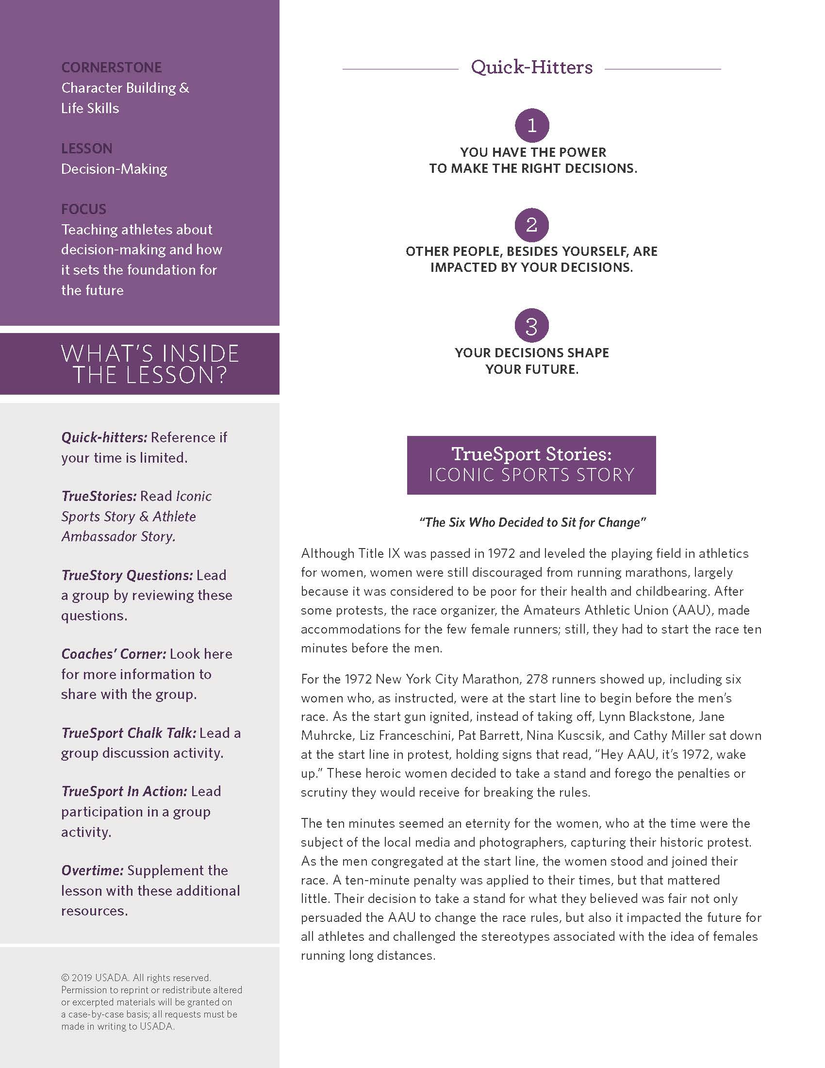 Find the answers to these questions and more inside the TrueSport Decision Making Lesson!