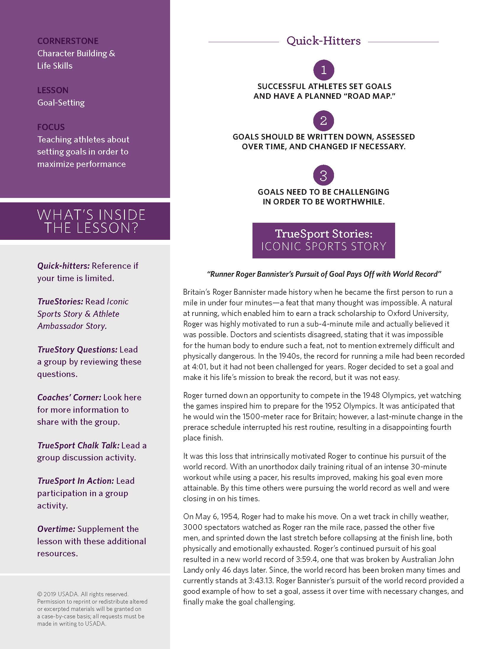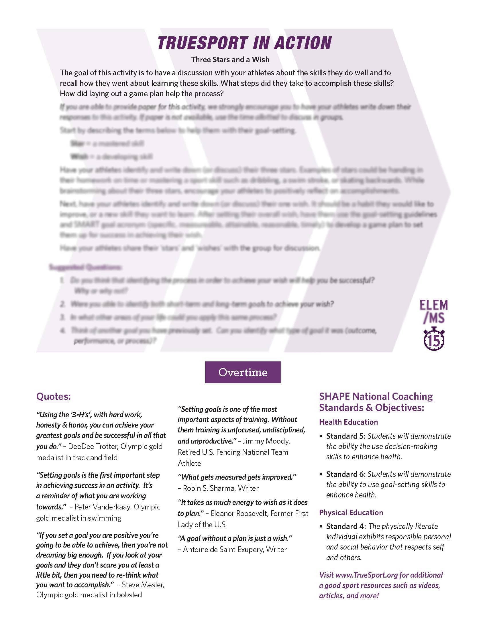 Find the answers to these questions and more inside the TrueSport Goal Setting Lesson!