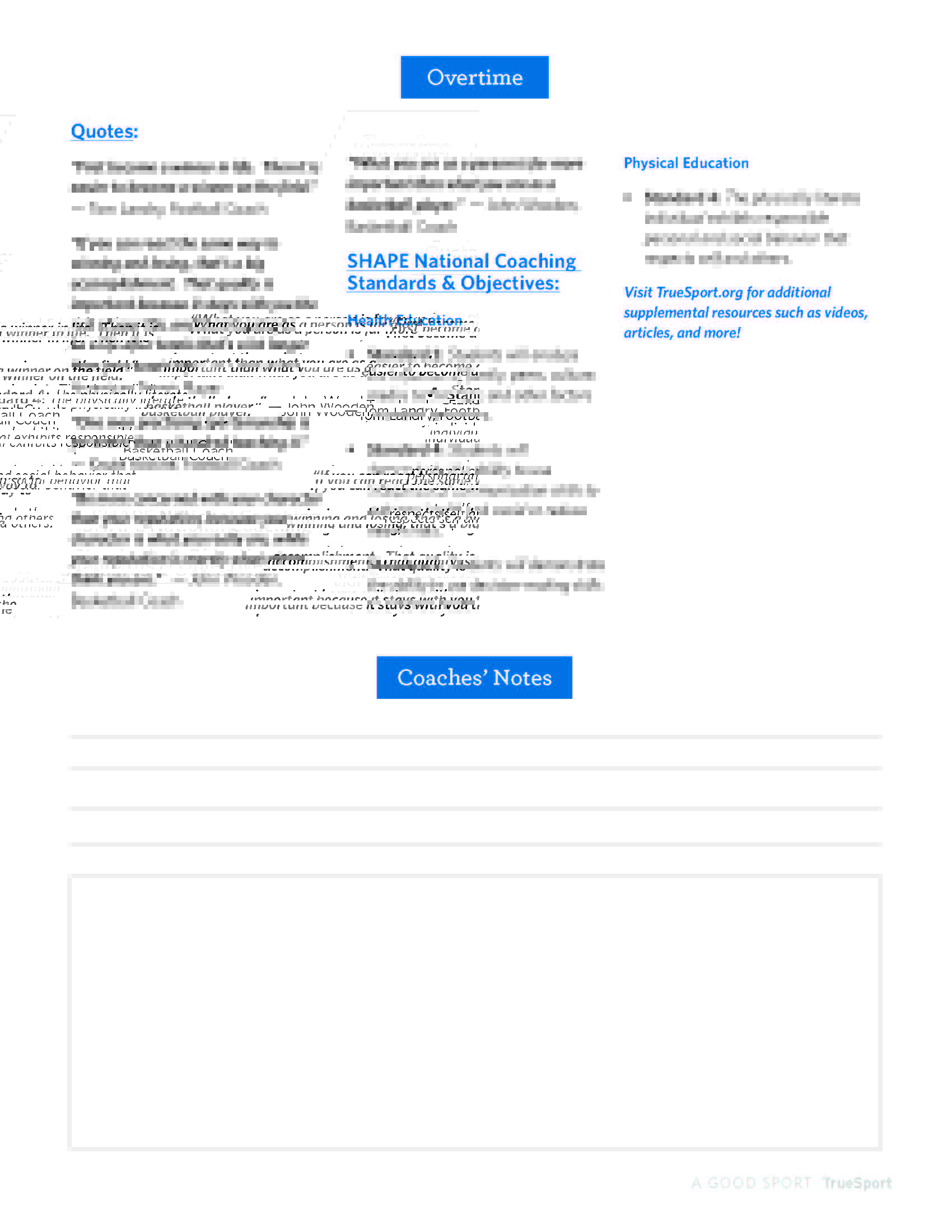 In addition to the A Good Sport Lesson Booklet, you will also receive one-page resources tailored for athletes, parents, and coaches that support the information being presented throughout the TrueSport Lesson. These take-home resources help bring the conversation from the field of play to the dinner table!