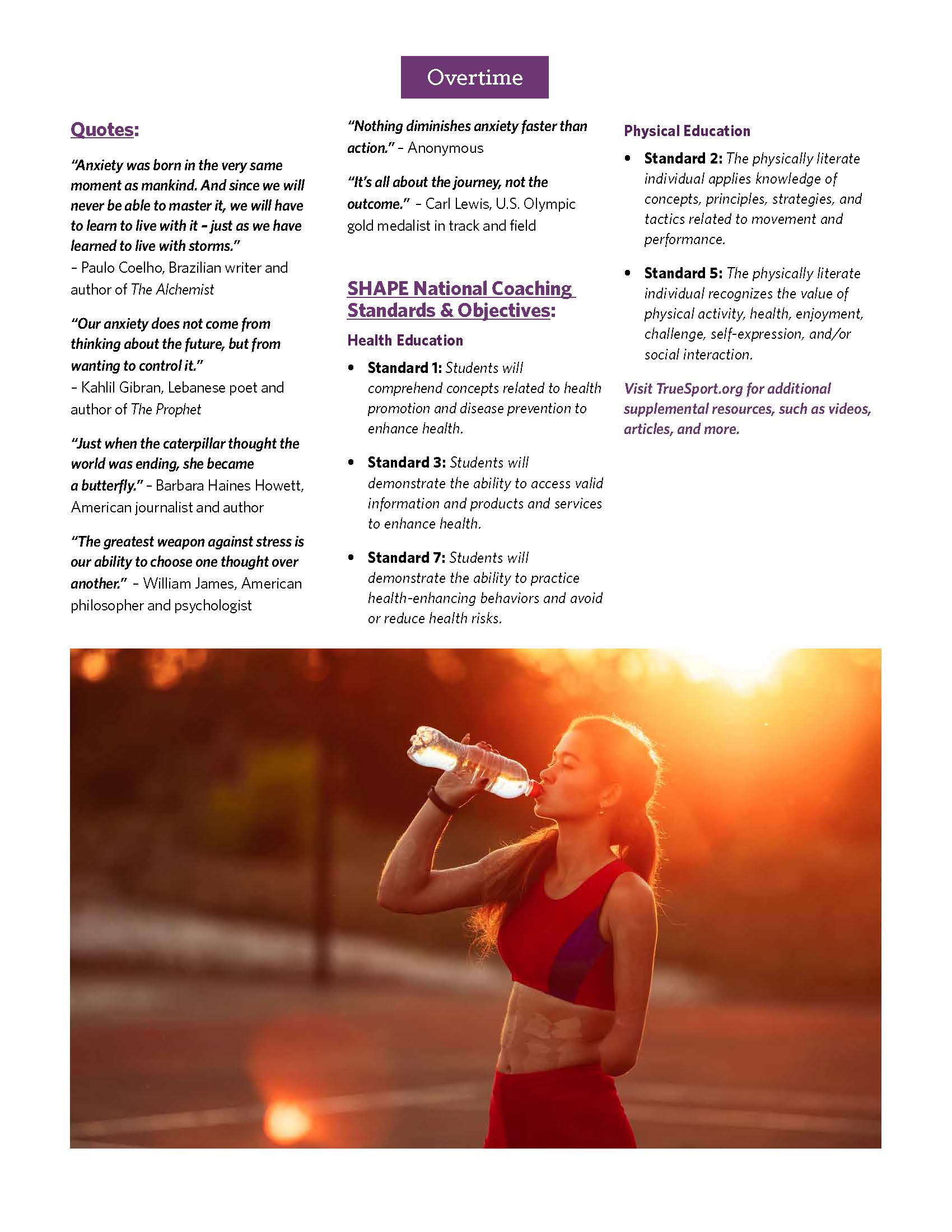 In addition to the Performance Anxiety Lesson Booklet, you will also receive one-page resources tailored for athletes and parents that support the information being presented throughout the TrueSport Lesson. These take-home resources help bring the conversation from the field of play to the dinner table!