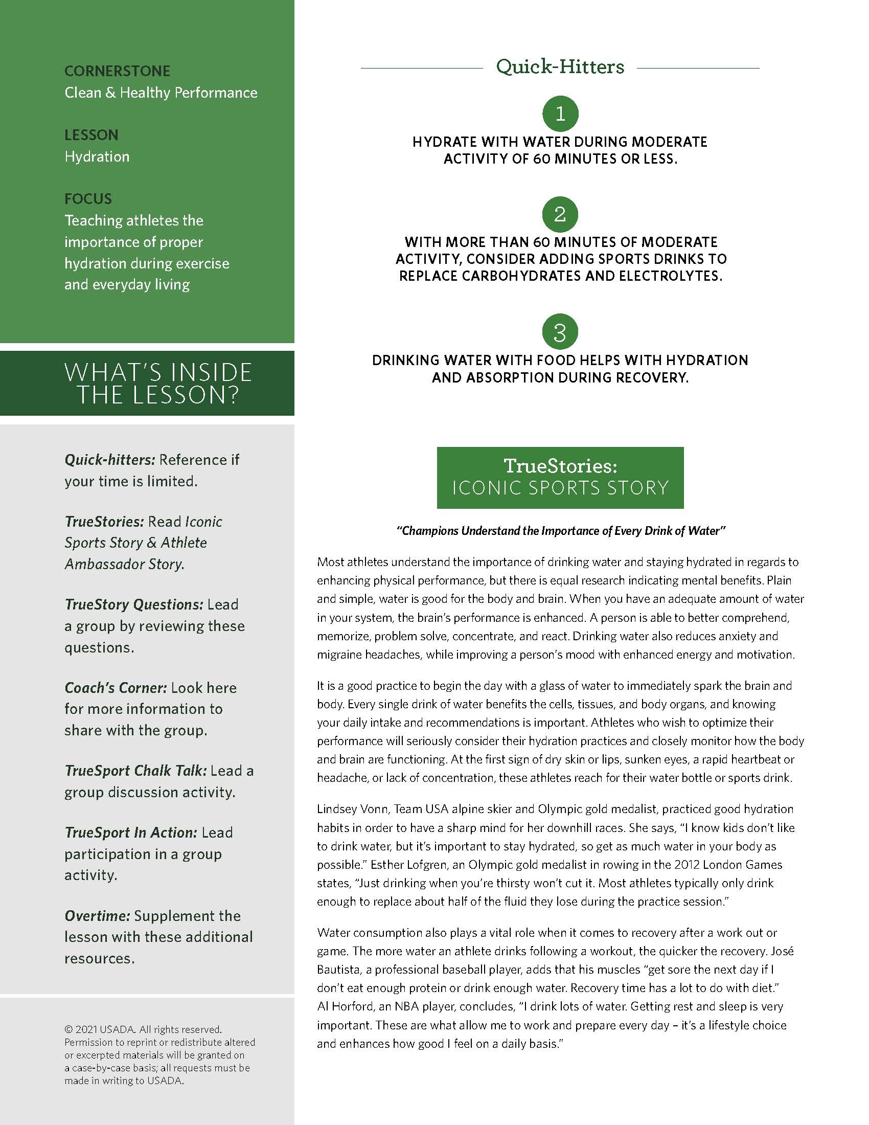 In addition to the Lesson Booklet, you will also receive an audience specific resources for each topic that speak directly to athletes, parents, and coaches. These resources support the information being presented throughout each lesson and help keep the conversation going both on and off the field of play.
