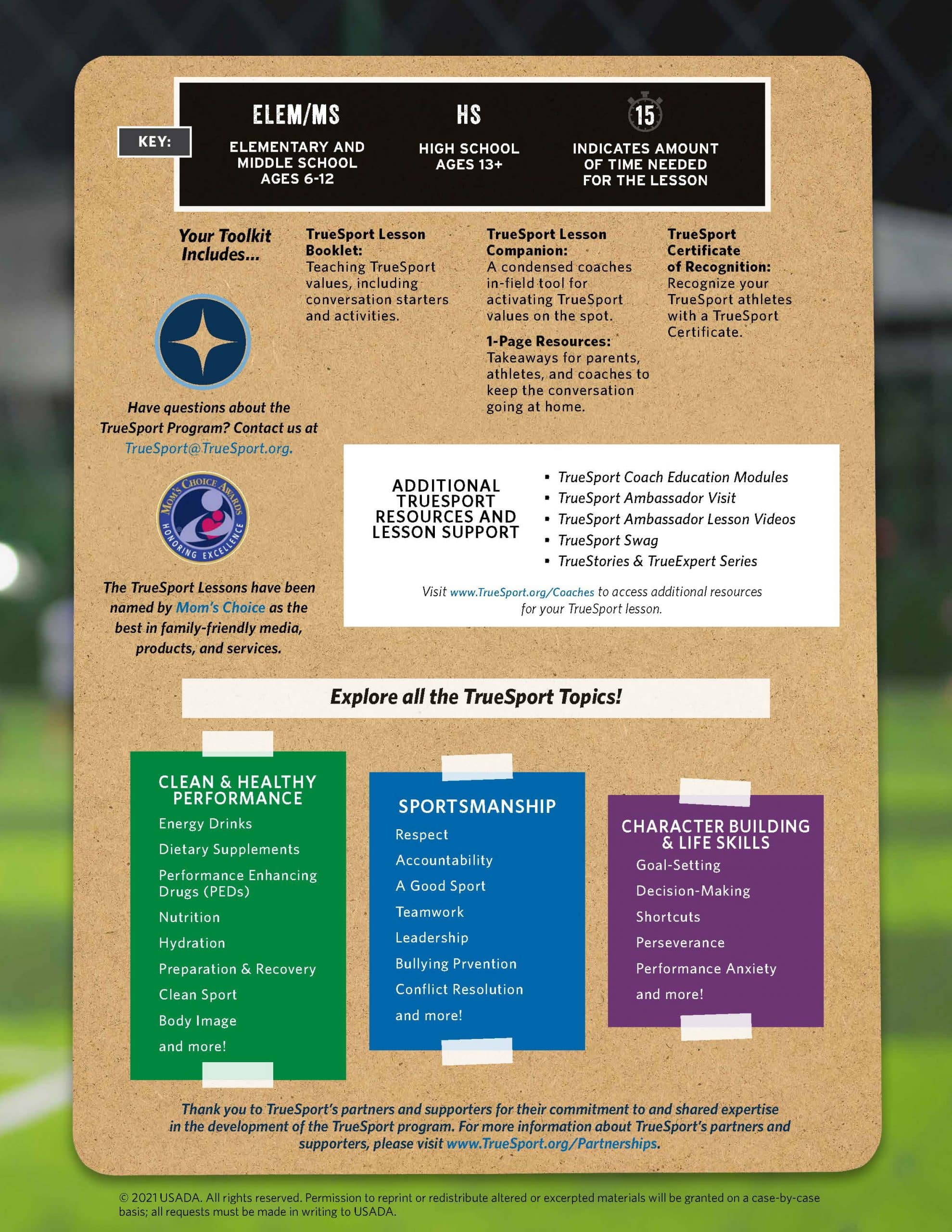 All files are for personal/non-commercial use only. If you would like to purchase a commercial license, please contact us at TrueSport@TrueSport.org.